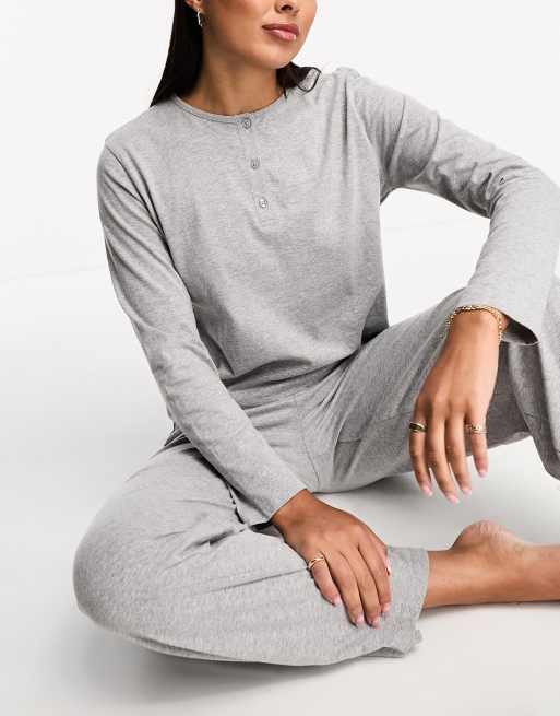 ASOS DESIGN - Mix en match - Henley pyjamatop met lange mouwen van katoen in gemêleerd grijs