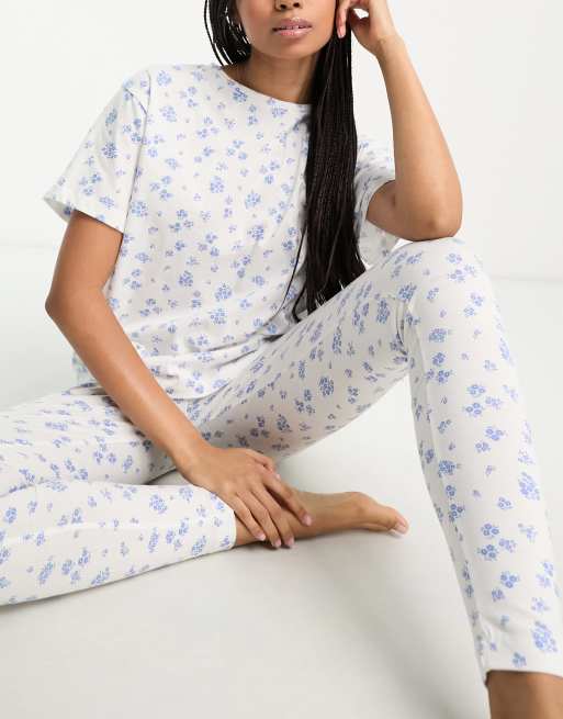 ASOS DESIGN - Mix en match - Pyjama T-shirt in wit met fijne bloemenprint
