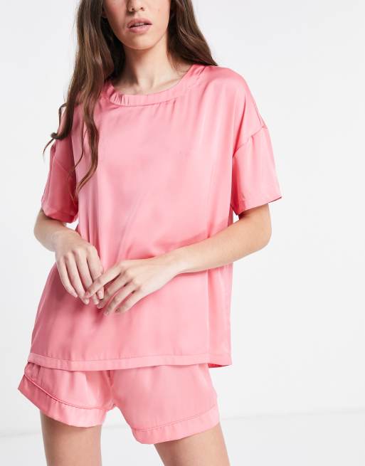 ASOS DESIGN - Mix en match - Pyjama T-shirt van satijn in roze