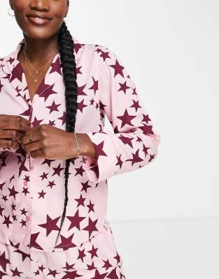 ASOS DESIGN - Mix en match - Pyjamashirt van modal met sterren in roze