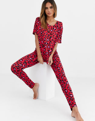 ASOS DESIGN - Mix en match - Set van T-shirt en legging met rode dierenprint