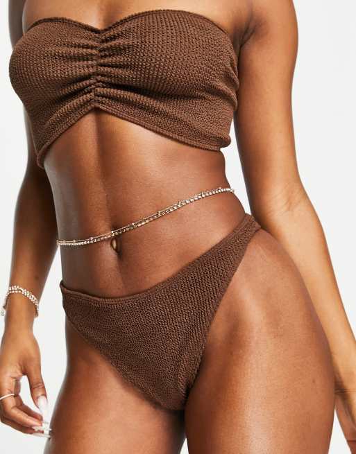 ASOS DESIGN - Mix & Match - Bikini-string van kreukstof in chocoladebruin