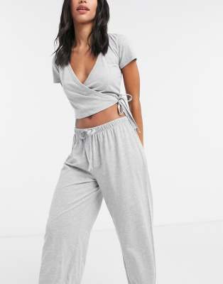 ASOS DESIGN - Mix & match - Jersey pyjamatop met overslag aan de voorkant in gemêleerd grijs