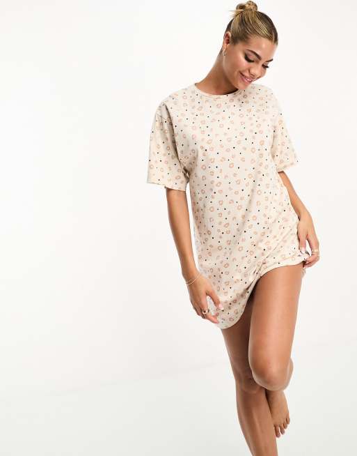 ASOS DESIGN - Mix & Match - Slaap T-shirt met fijne dierenprint in crème