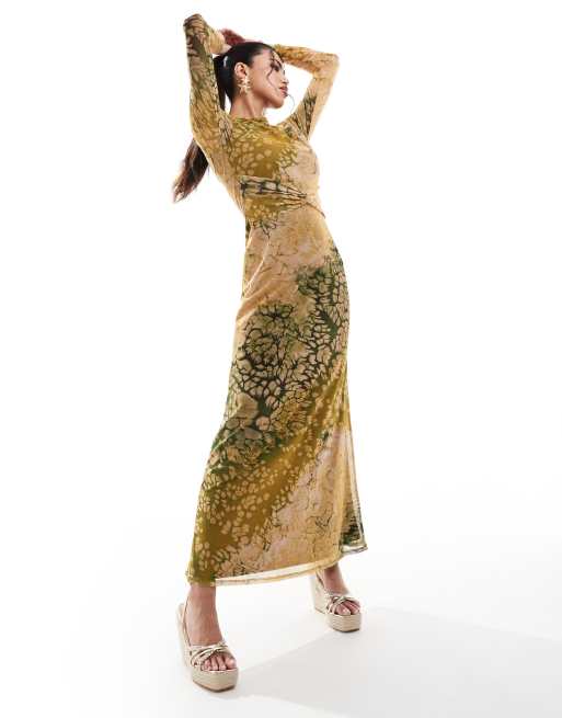 ASOS DESIGN - Modesty - Maxi jurk van mesh met lange mouwen, gedraaid detail aan de taille, rimpeleffect en spikkelprint