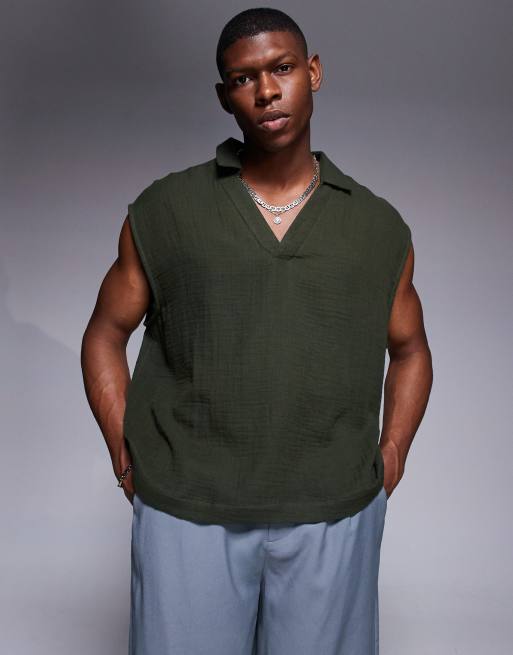 ASOS DESIGN - Mouwloos recht oversized overhemd met structuur in groen