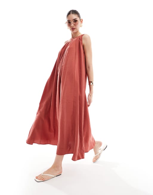 ASOS DESIGN - Mouwloze geplooide oversized maxi jurk in roestbruin