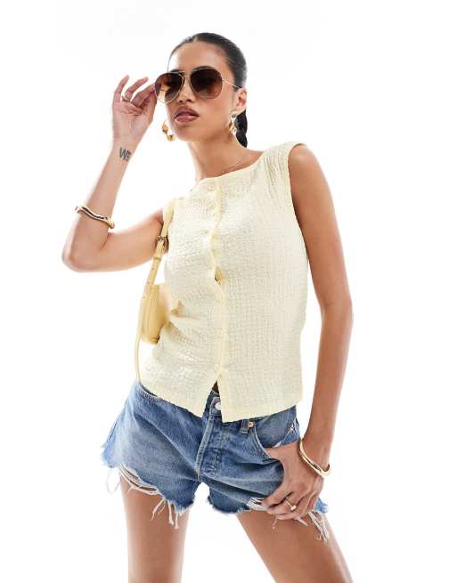 ASOS DESIGN - Mouwloze gilettop met textuur in citroengeel