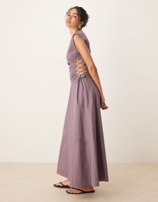 ASOS DESIGN - Mouwloze midi-jurk met gerimpeld lijfje en veters aan de zijkant in licht mauve