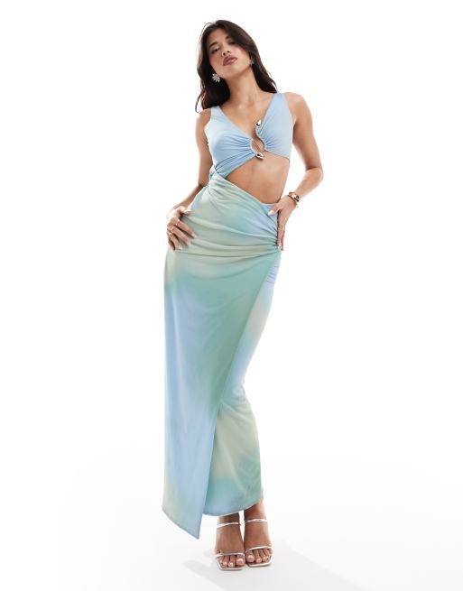 ASOS DESIGN - Mouwloze midi-jurk van mesh in abstract pastel