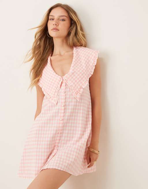 ASOS DESIGN - Mouwloze overhemdjurk met oversized kraag in roze gingham ruit