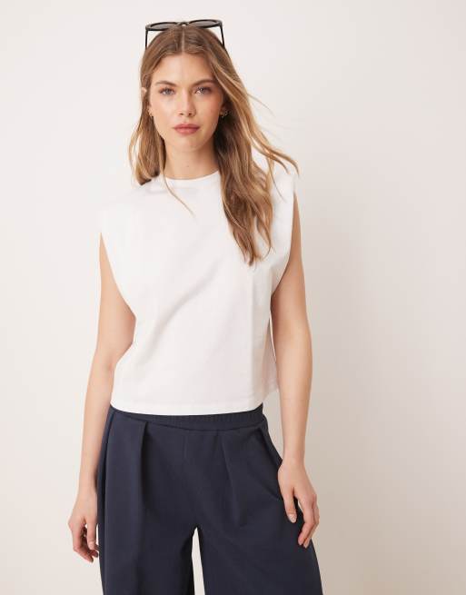 ASOS DESIGN - Mouwloze top met schoudervulling in wit