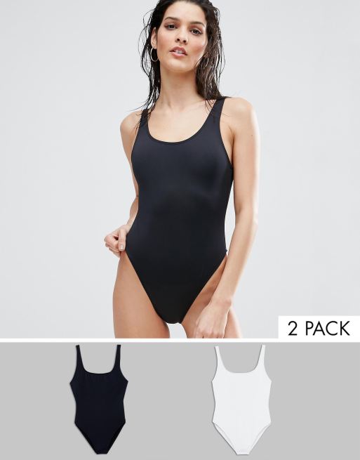 ASOS DESIGN - Multipack van hooguitgesneden badpakken met lage ronde hals