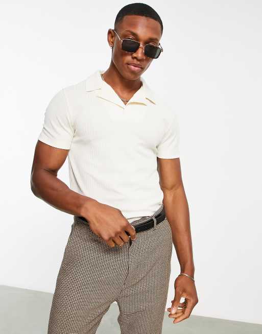 ASOS DESIGN - Muscle fit polo met geribbelde textuur in crème