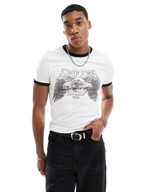 ASOS DESIGN - Muscle fit T-shirt met gekleurd randje en grungeprint op de voorkant in wit