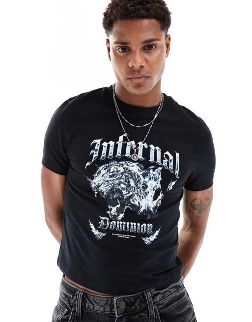 ASOS DESIGN - Muscle fit T-shirt met grunge-print op de voorkant in zwart