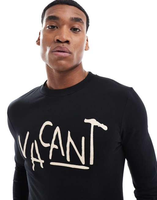 ASOS DESIGN - Muscle fit t-shirt met lange mouwen en punkprint in zwart