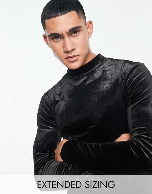 ASOS DESIGN - Muscle fit T-shirt met lange mouwen van zwart fluweel met col