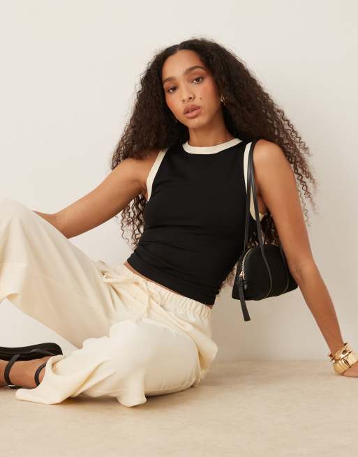 ASOS DESIGN - Naadloze tanktop met contrasterende biezen en ronde hals in zwart