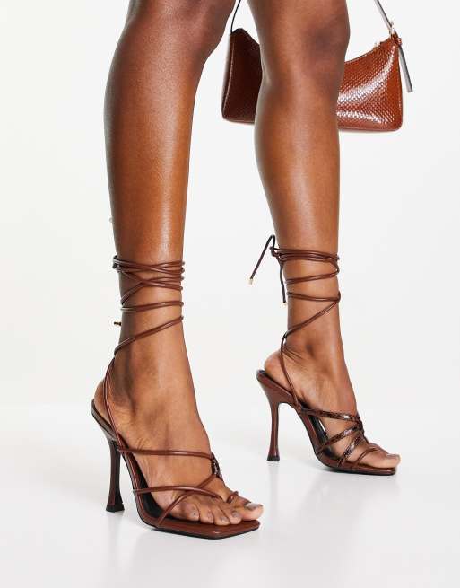 ASOS DESIGN - Natalie - Sandalen met bandjes en teenlus in chocoladebruin