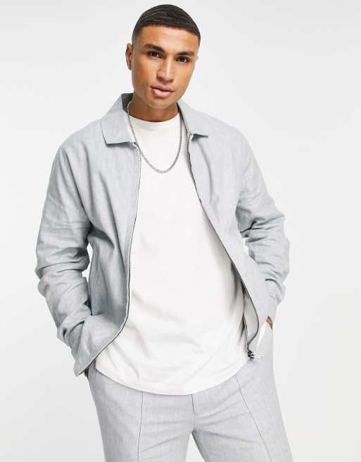 ASOS DESIGN - Net Harrington jack met smalle pasvorm en visgraatmotief in pastelblauw, deel van co-ord set