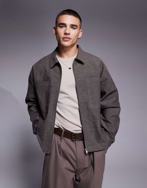 ASOS DESIGN - Net Harrington shacket met pied-de-poule ruitjes in bruin, deel van co-ord set