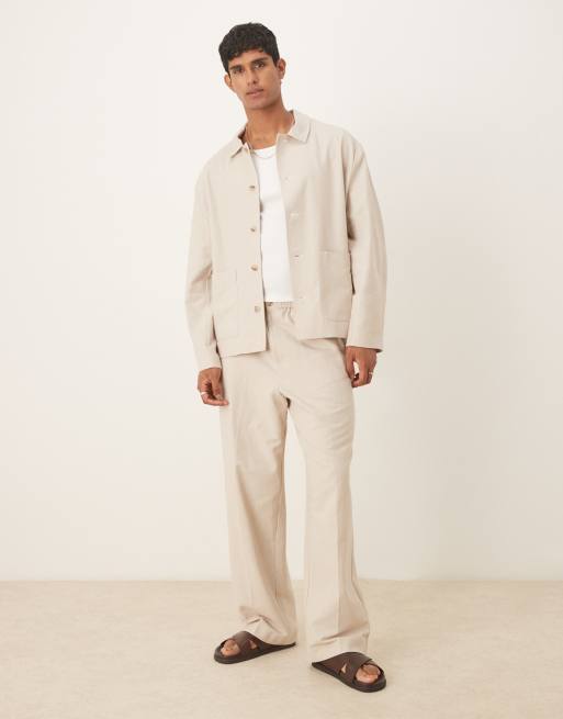 ASOS DESIGN - Net overshirt in ecru met linnen, deel van co-ord set