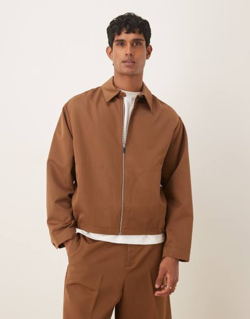 ASOS DESIGN - Net oversized jack met blousonmouwen in bruin, deel van co-ord set