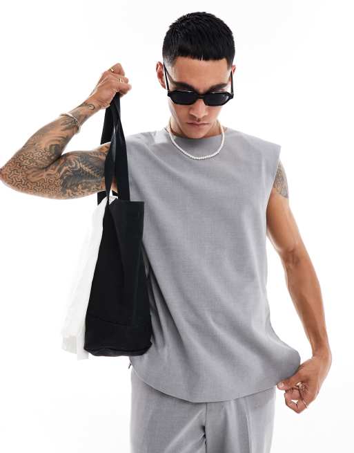 ASOS DESIGN - Nette boxy geweven top met ronde hals in grijs, deel van co-ord set