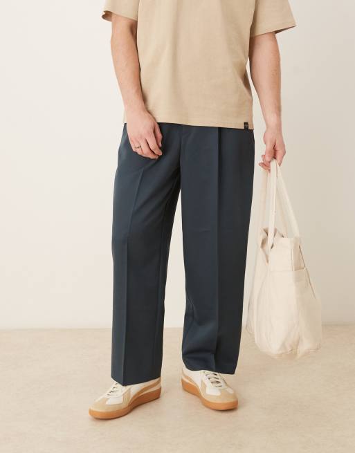ASOS DESIGN - Nette broek met ballonpasvorm en plooi aan de voorkant in donkerblauw