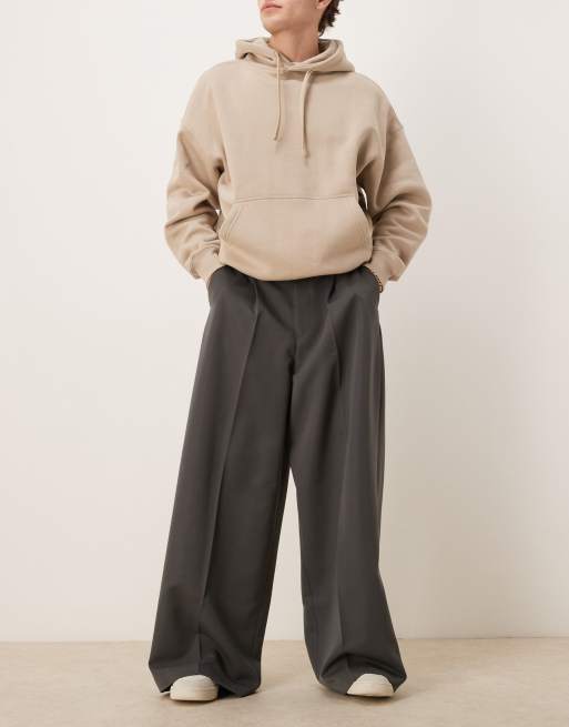 ASOS DESIGN - Nette broek met extreem wijde pijpen en plooien aan de voorkant in antracietgrijs