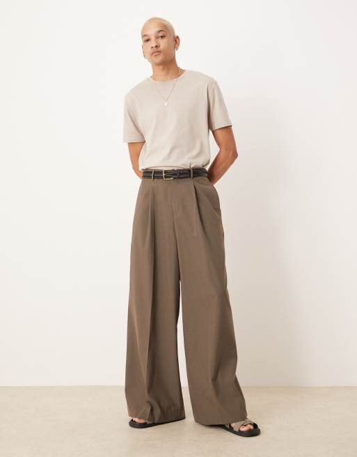 ASOS DESIGN - Nette broek met extreem wijde pijpen en plooien aan de voorkant in bruin