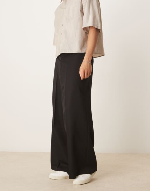 ASOS DESIGN - Nette broek met extreem wijde pijpen en vouw aan de voorkant in zwart