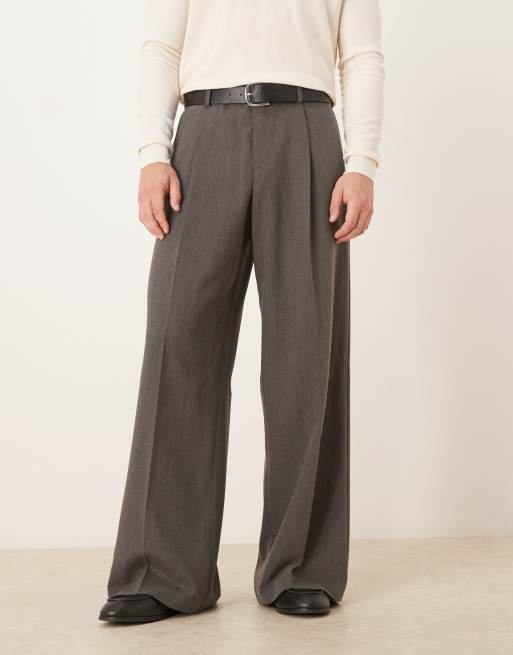 ASOS DESIGN - Nette broek met losse pijpen en plooi aan de voorkant in grijze keperstof