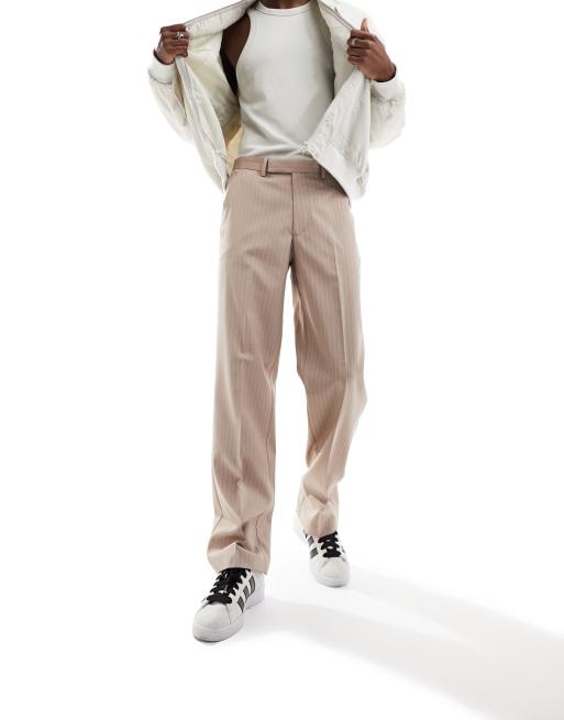 ASOS DESIGN - Nette broek met rechte pijpen en krijtstreep in stone