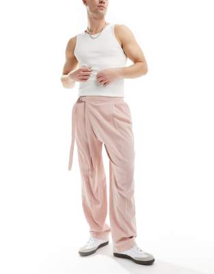 ASOS DESIGN - Nette broek met wijde pijpen en asymmetrische overslag van linnenmix in oudroze