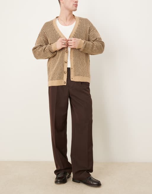 ASOS DESIGN - Nette broek met wijde pijpen en dubbele plooien in bruin