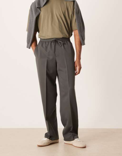 ASOS DESIGN - Nette broek met wijde pijpen en elastische taille in antracietgrijs