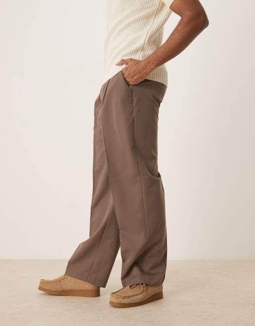 ASOS DESIGN - Nette broek met wijde pijpen en plooien aan de voorkant in bruin