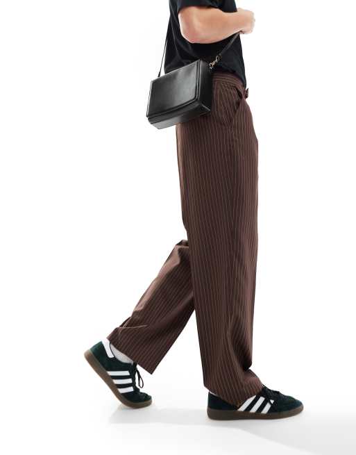 ASOS DESIGN - Nette broek met wijde pijpen in chocoladebruin met krijtstreep