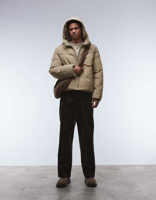 ASOS DESIGN - Nette corduroy broek van katoen met wijde pijpen en verstelbare zijkant in bruin