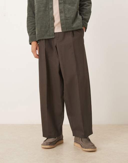 ASOS DESIGN - Nette extreem toelopende broek van 100% katoen met plooi aan de voorkant in bruin