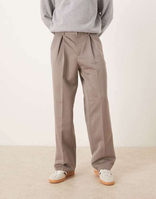 ASOS DESIGN - Nette geplooide broek met wijde pijpen en riemdetail in nertsbruin