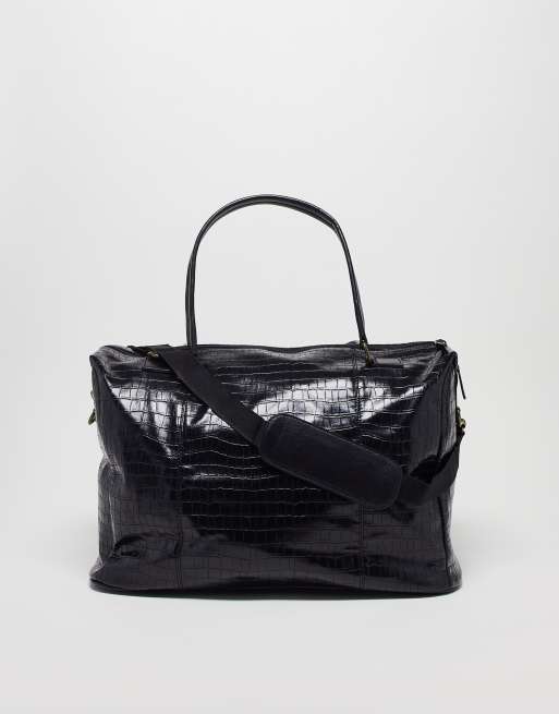 ASOS DESIGN - Nette, gestructureerde weekendtas in zwart met krokodillenmotief
