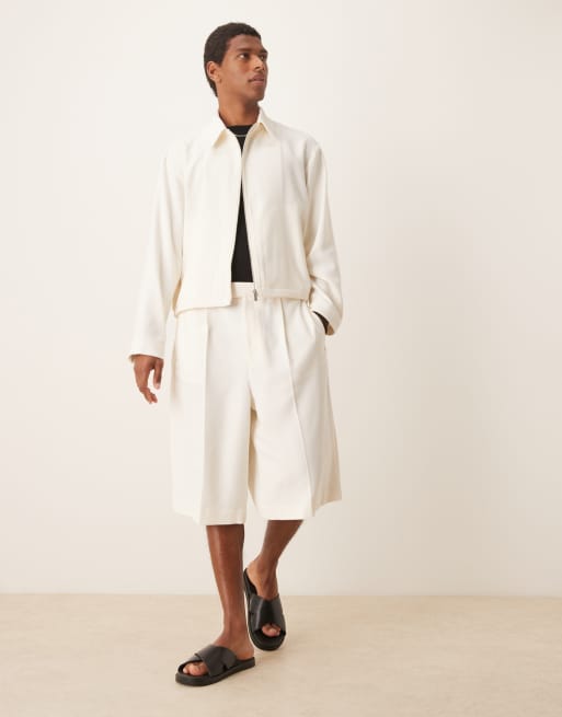 ASOS DESIGN - Nette oversized bermudashort in wit microtextuur, deel van co-ord set