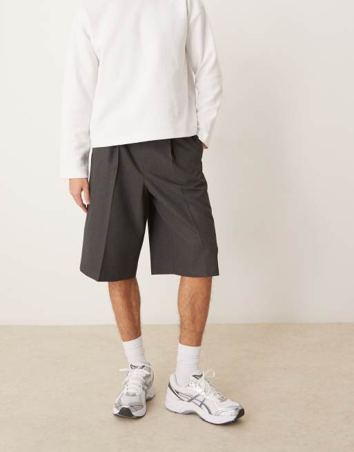 ASOS DESIGN - Nette oversized bermudashort met plooien aan de voorkant in donkergrijs