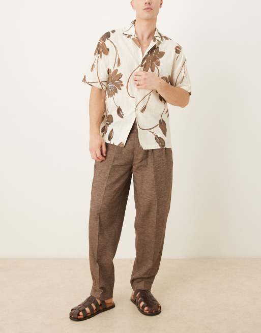 ASOS DESIGN - Nette oversized toelopende broek met dubbele plooi en linnenlook in bruin