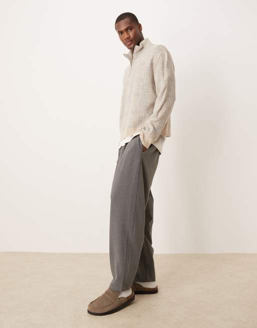 ASOS DESIGN - Nette oversized toelopende broek met dubbele plooi in grijs