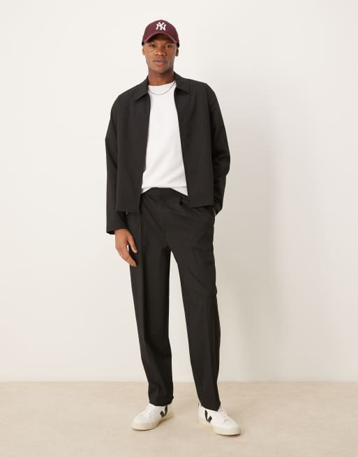ASOS DESIGN - Nette pantalon met wijde pijpen in zwart met krijtstreep, deel van co-ord set