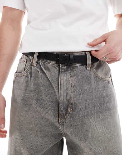 ASOS DESIGN - Nette skinny riem van imitatieleer met matte zwarte gesp in zwart